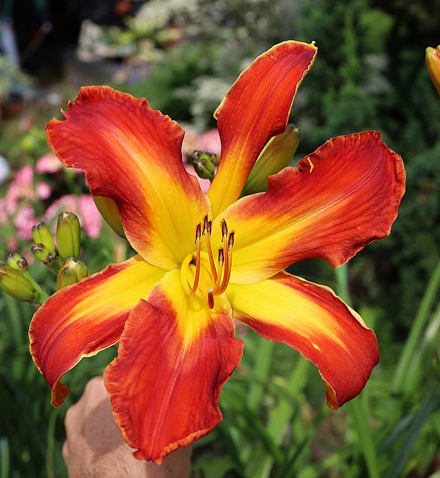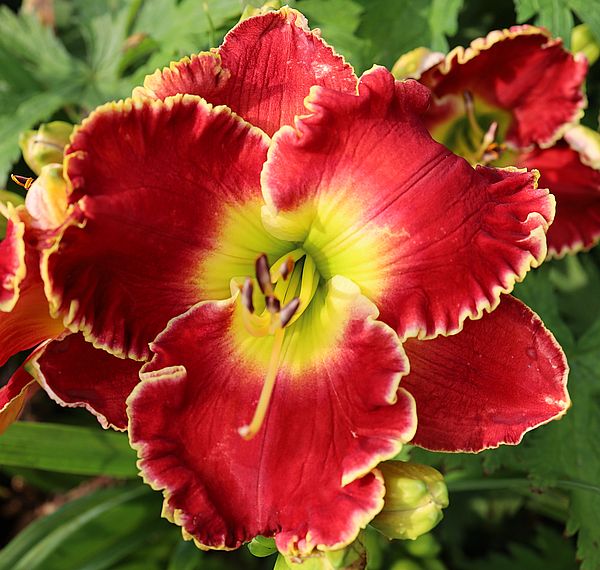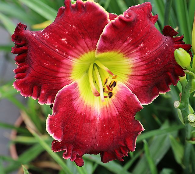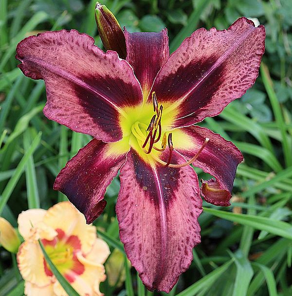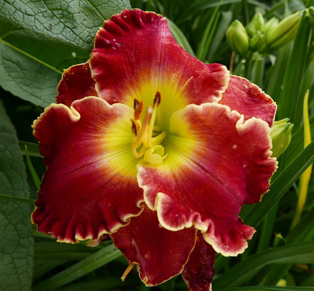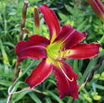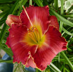 (Bachman 2009) TET 102/15 DOR, rot, Schlund gelb-grün, 4*, 28 Bl., ((Pickett's Charge x Highland Spider)x(Highland Pinched Fingers x Red Suspenders)) |