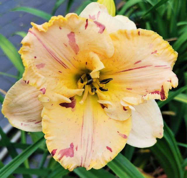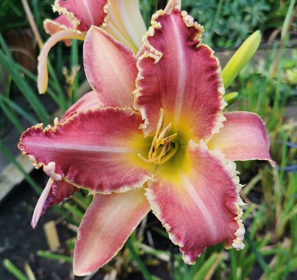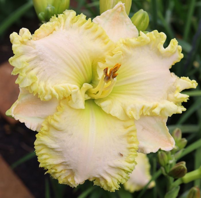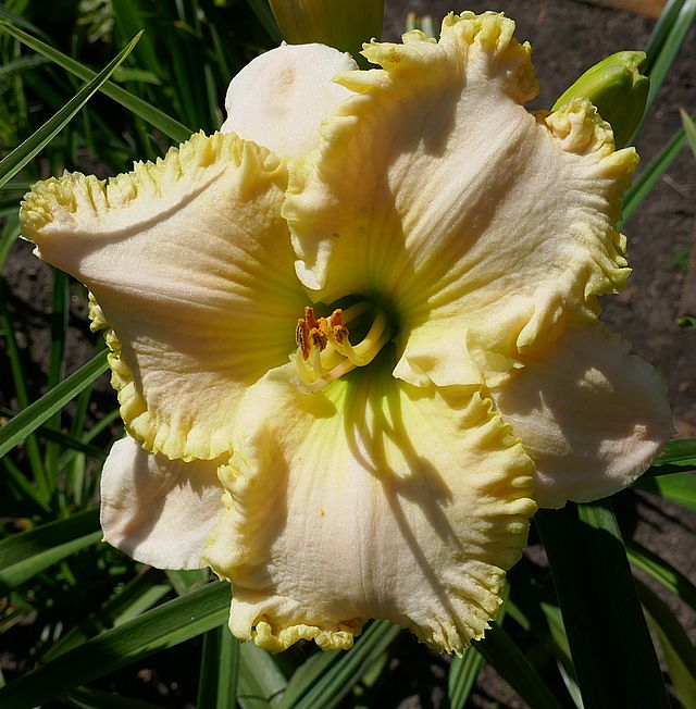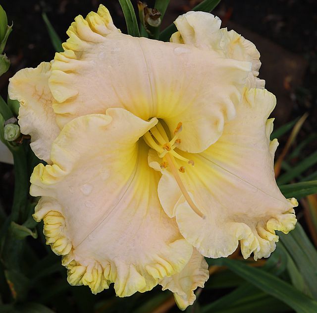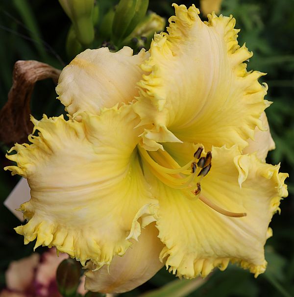 (Waldrop 2013) TET 94/13 SEV, gelb-ivory mit hell-pink, Zahnrand, 4*, 24 Bl., (Wild Hair × Fantastic Fringe) |
