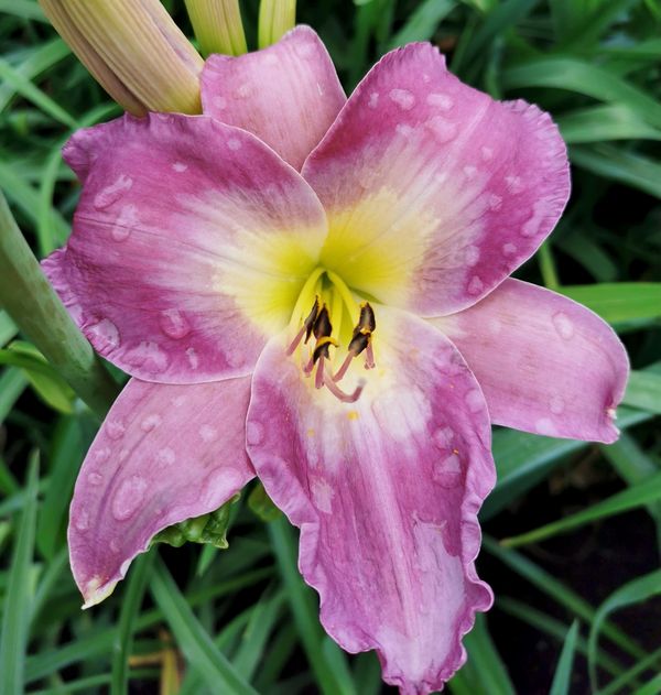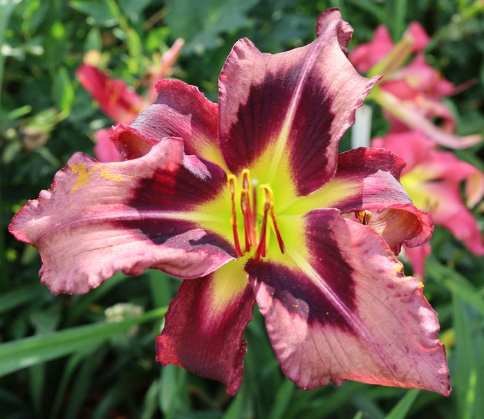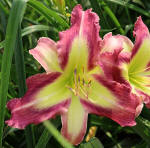 (Stamile 2002) TET 91/21,5 EV, pink, Auge rot, Schlund grün, 8*, 53 Bl., (Waiting in the Wings x(Lavender Arrowhead x Jabberwocky)) 22 Kinder |