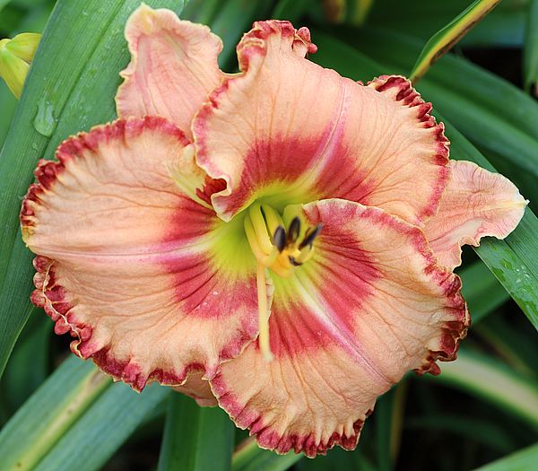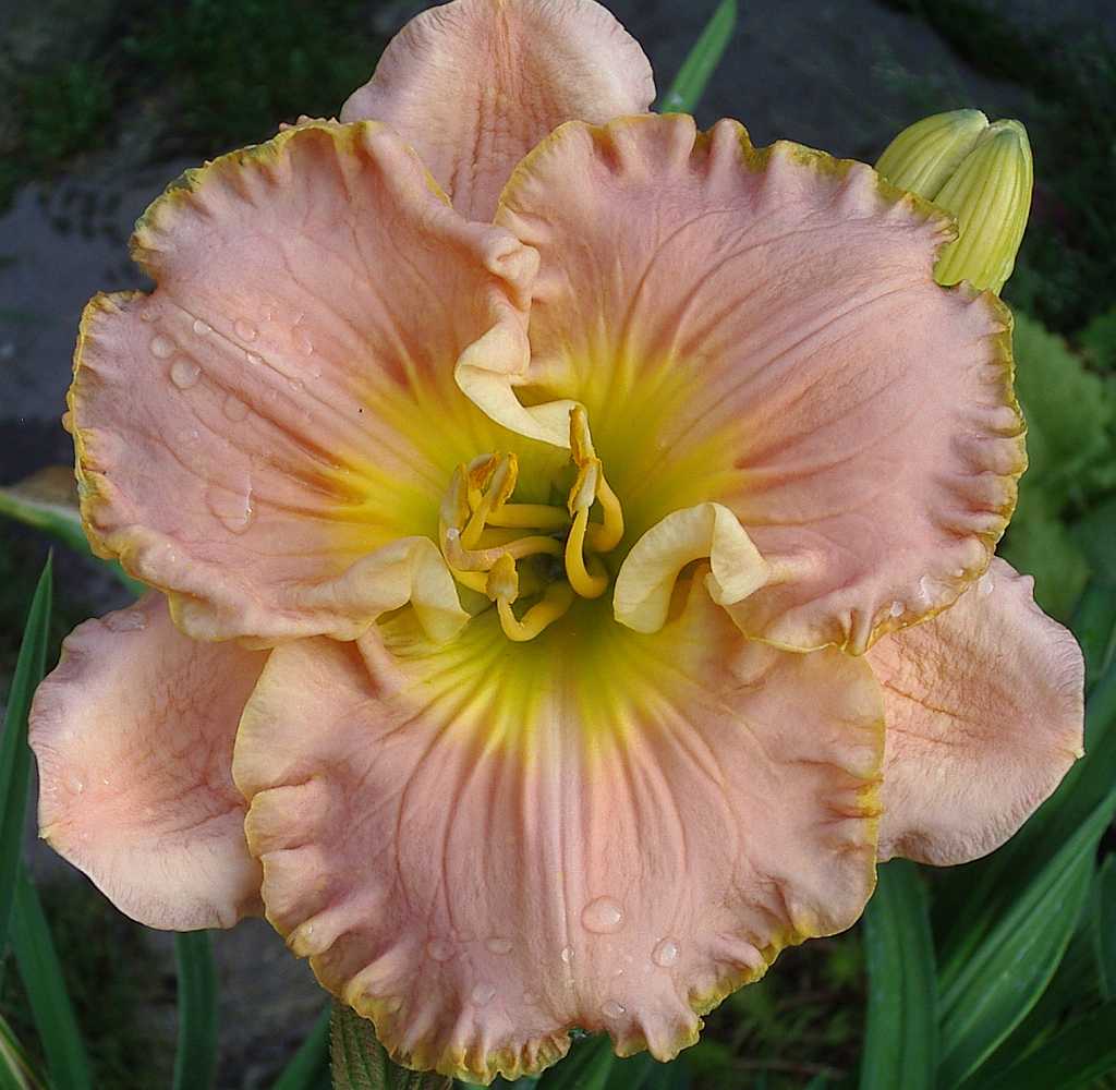 (Wilson 1995) DIP 60/12 SEV, pfirsich-pink, Schlund grün, (Whipped Peaches x Ruffled Masterpiece) 37 Kinder |