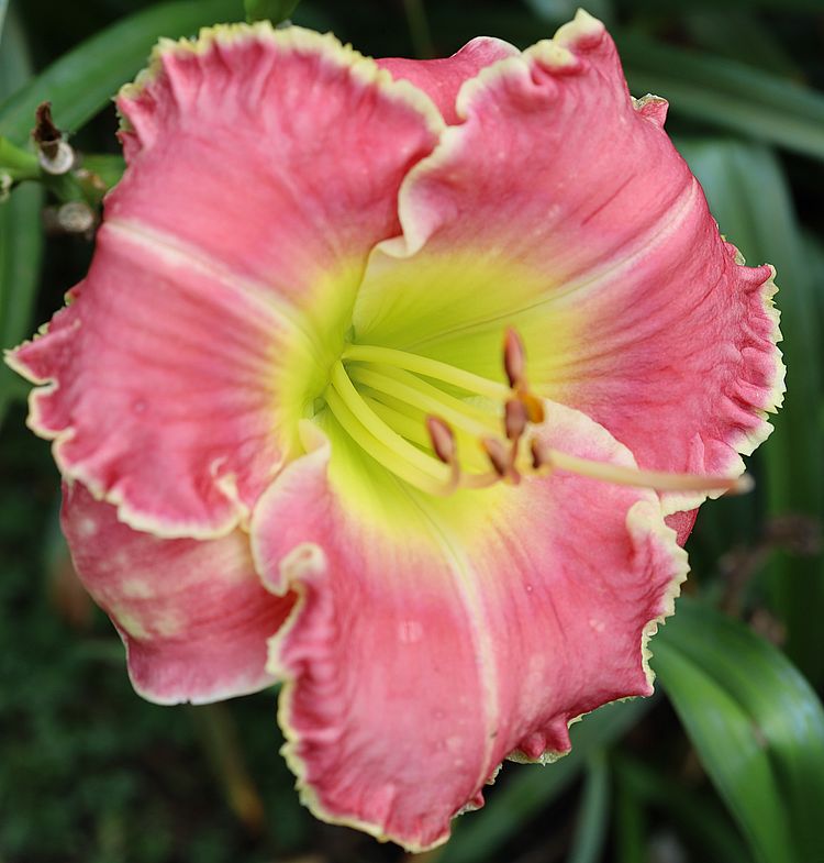 (Gossard 2013) TET 95/23 DOR, rosa-pink, dukle Augenzone, Zahnrand, Schlund grün, 5*, 30 Bl., Duft, 8 Kinder ,(((Sun Bear x Julie Newmar) x Sword Dancer) x Rosy Spiketail) |
