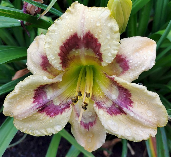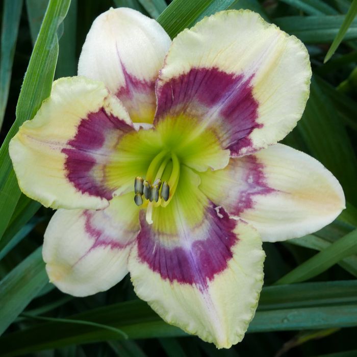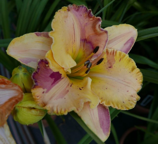 (Salter 2010) TET 71/15 SEV, hell-creme-gelb, Auge purpur, Rand purpur+creme Zähne, (((Spellbound Secret x Fabulous Black Pearl)x Gthic Finery)x (Fabulous Black Pearl x Shipwreck Cove)) 3 Kinder |