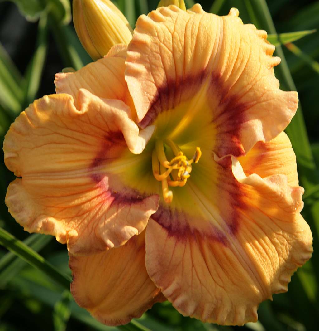 (Stamile 1999) TET 76/15 hell-orange, Auge multicolor lavender-purple, Schlund grün, 5*, 35 Bl., Duft, ((Moonlit Masquerade x Magnificent Rainbow)x(Etched Eyes x Rainbow Eyes)) 20 Kinder |