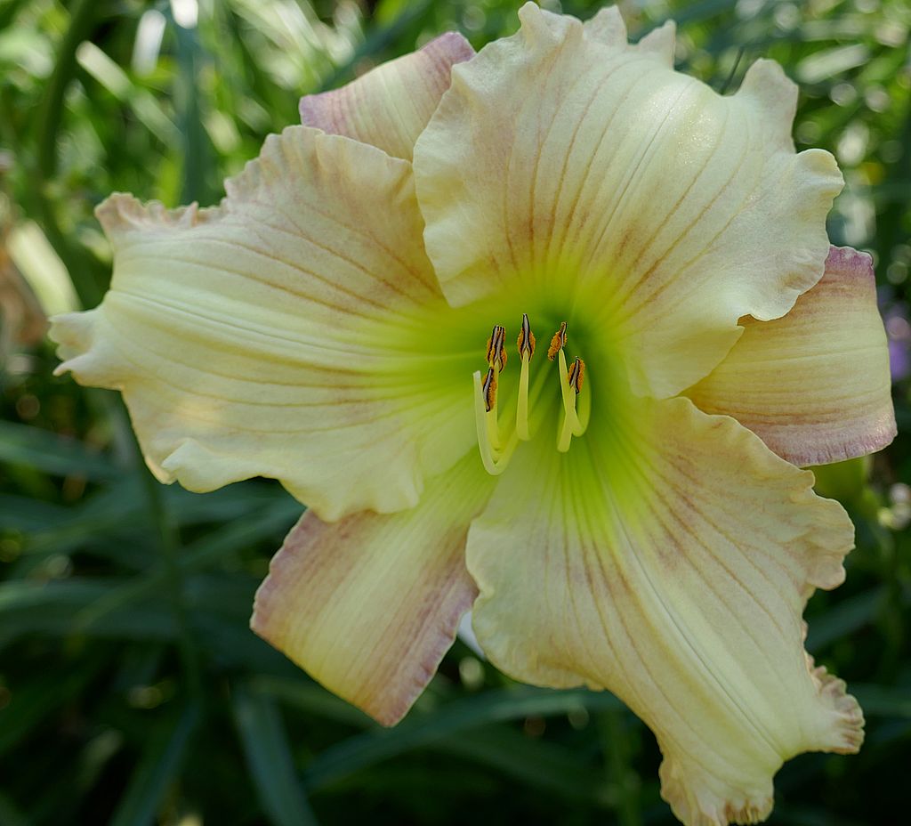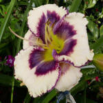 (Stamile 2006) TET 81/11 EV, creme, Auge violett, Rand violett + silber, Schlund grün, 6*, 35 Bl., (Rock Solid x Calling All Angels) 12 Kinder |