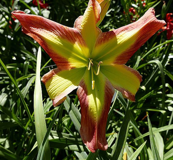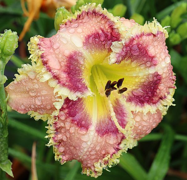 (G.Pierce 2012) TET 117/16,5 EV, creme, Auge rot, Rand rot+gruen, Schlund grün, 7*, 40 Bl., Duft, (Orange Cherry Jubile x Born To Be Wild) 6 Kinder |