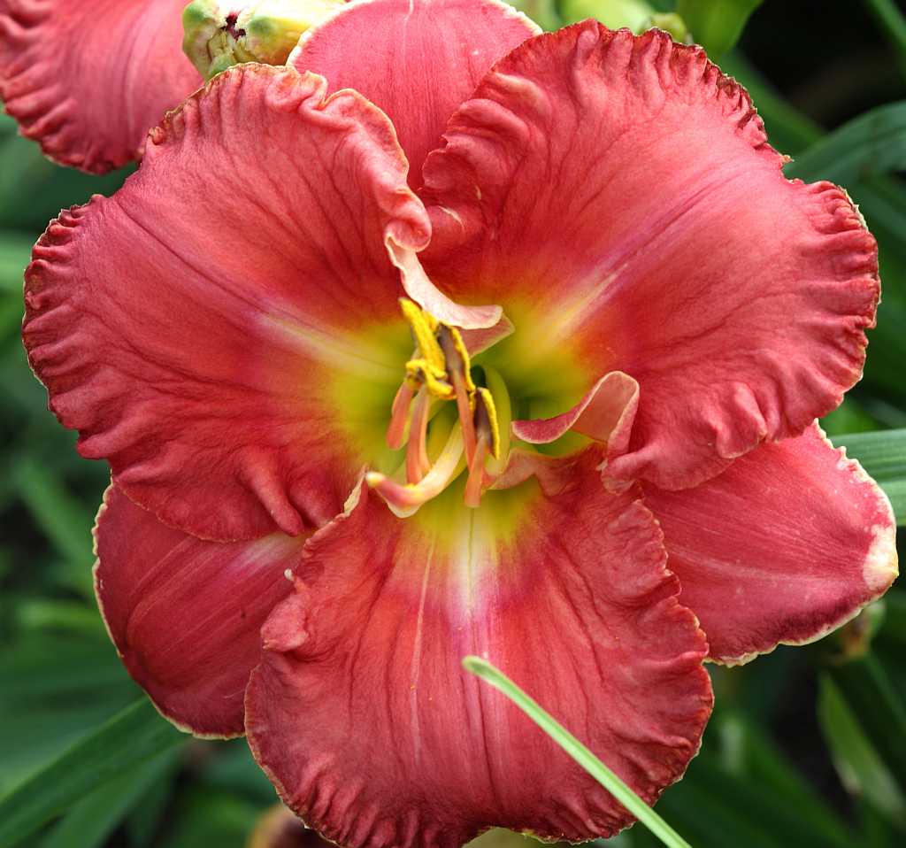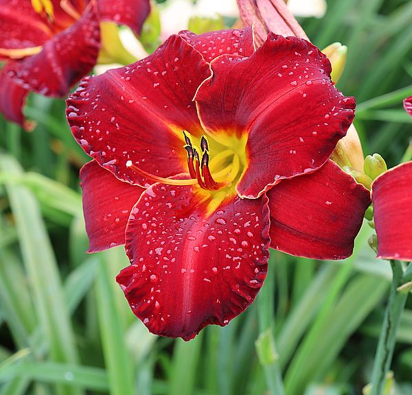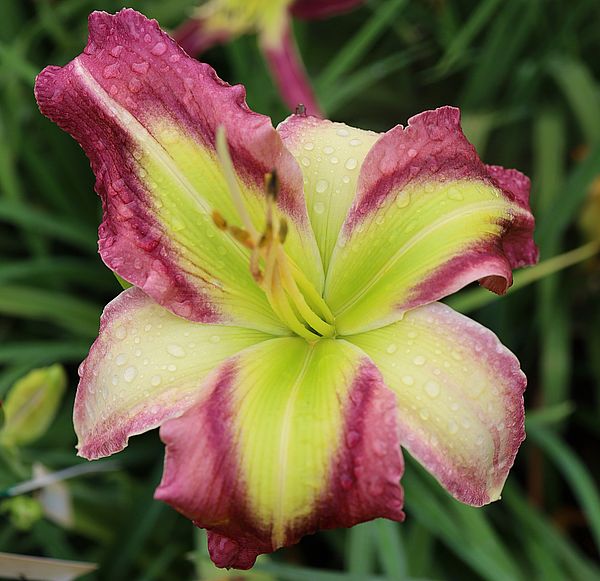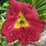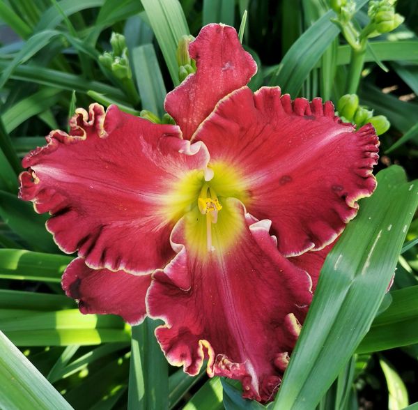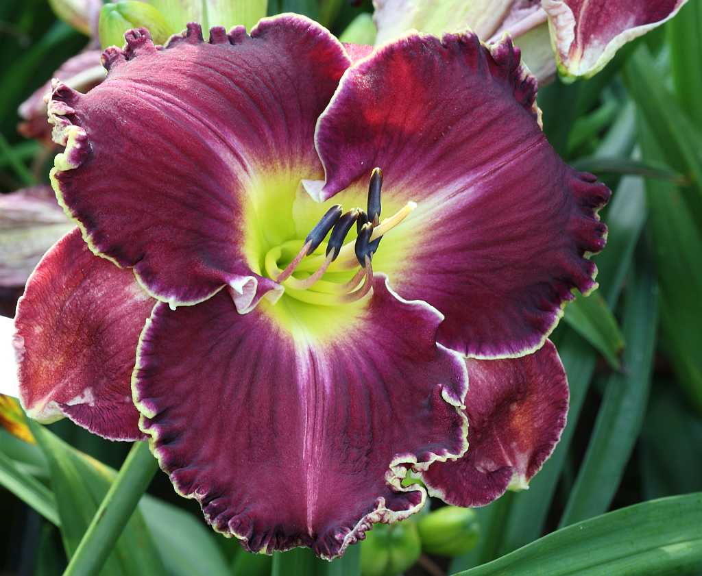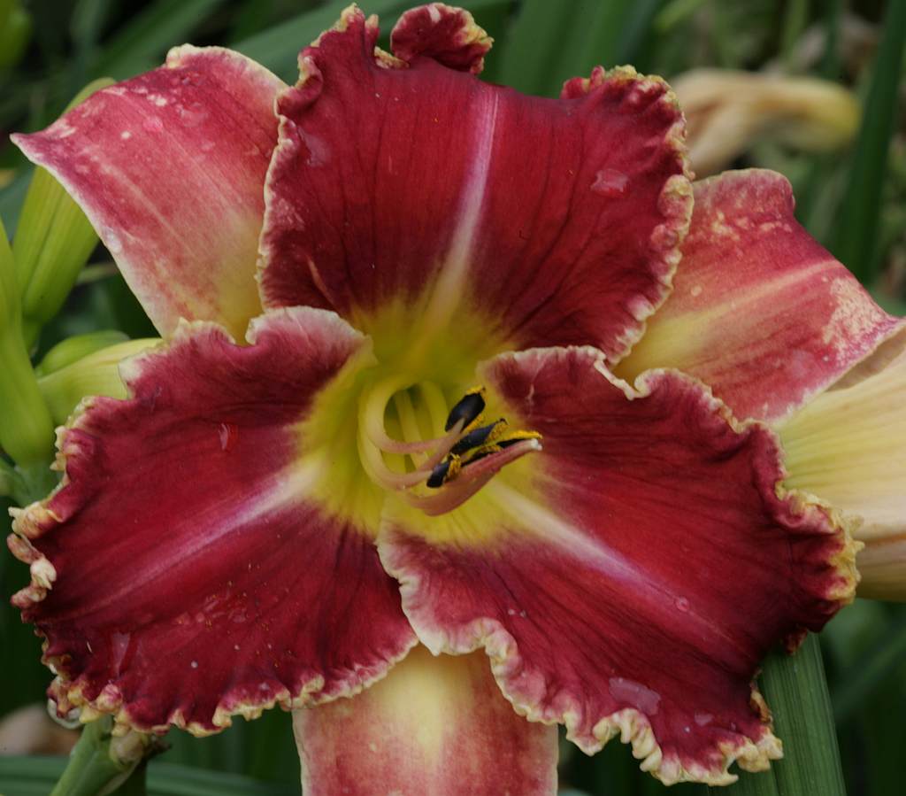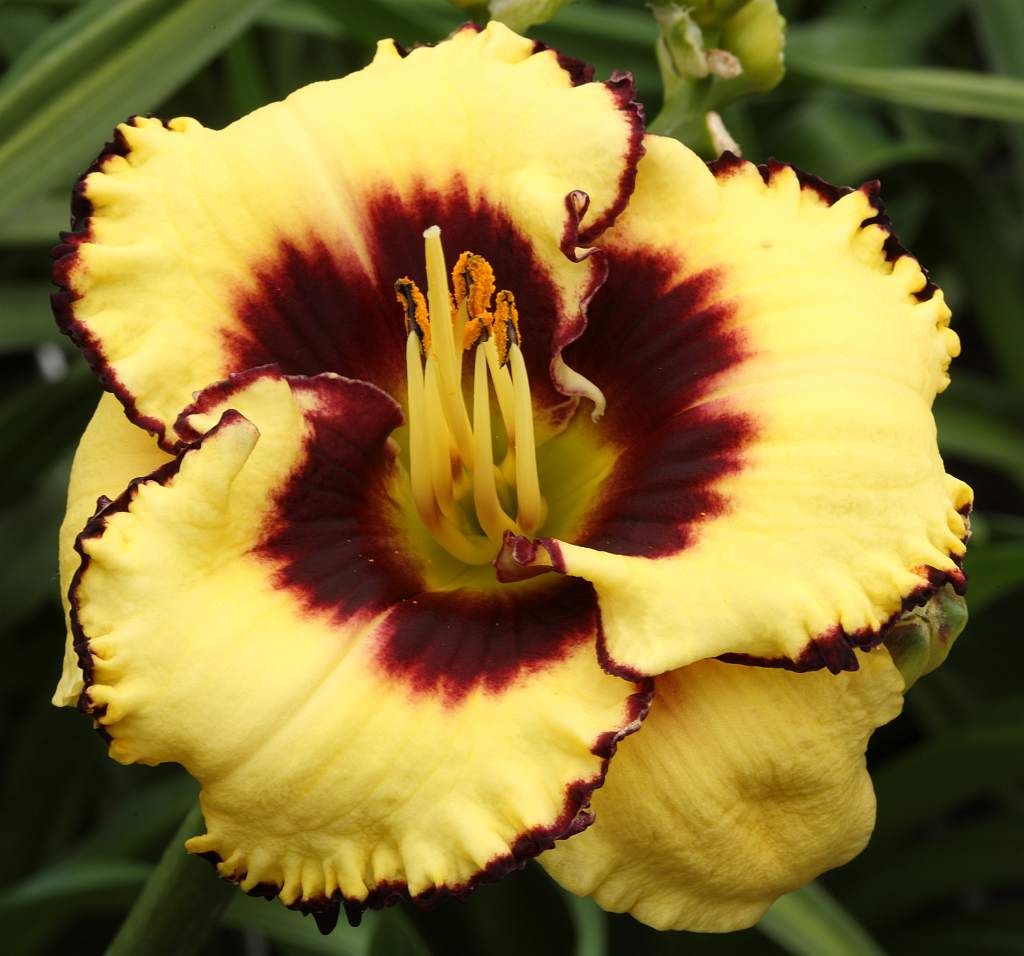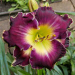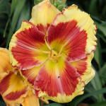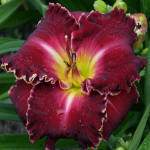 (Kinnebrew 2010) TET 76/15 SEV, burgunder-rot, Rand Zähne -gelb, 4*, 26 Bl., (Randy Stephens x Iwanna Piranha) 7 Kinder |