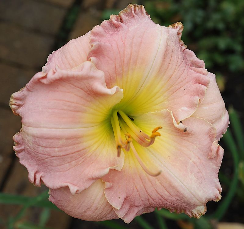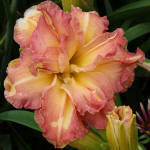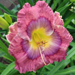 (Pierce 2014) TET 100/15 SEV, creme-pink, Goldrand gewellt, Schlund grün, 9*, 46+Bl., Duft ((Angels Gather Around x Fringy) x sib sdlg to fancy Lace) |