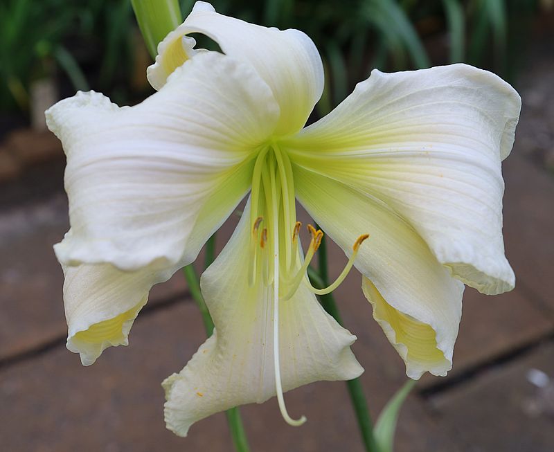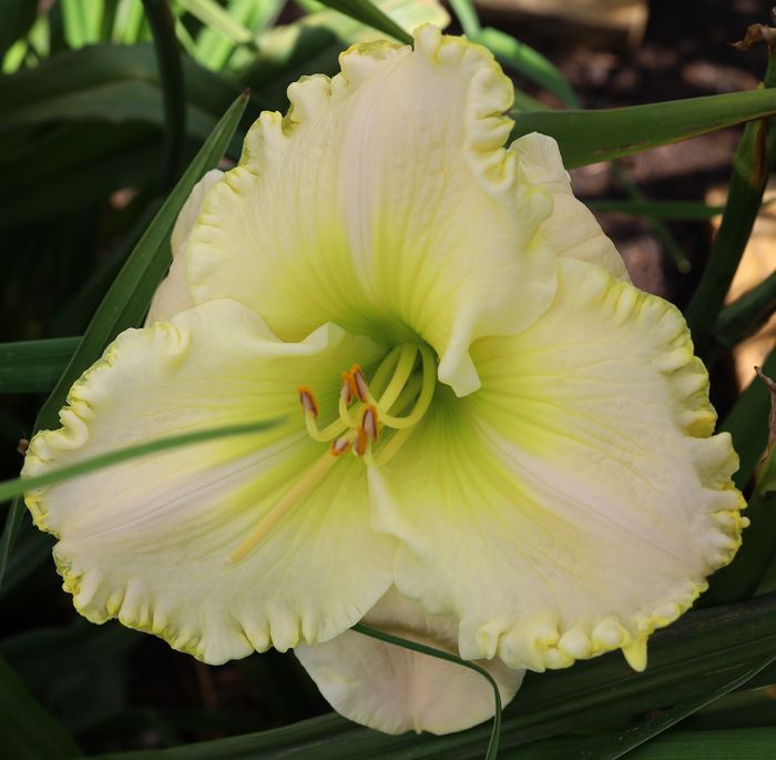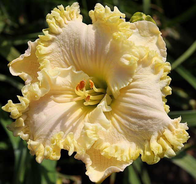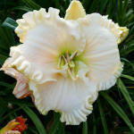 (Smith 2005) TET 75/15 SEV, creme-weiss, Rand gewellt-gelb, Schlund grün, 4*, 30 Bl., (TET Champagne Elegance x Front Porch Swing) |