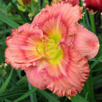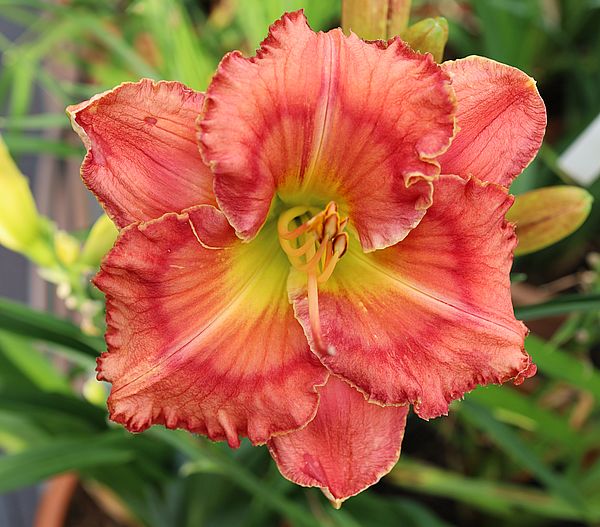 (Owen-P. 2015) TET 81/15 Dor, pink-orange, Auge tief-pink, Schlund grün, 6*, 30 Bl.,(Oy Vey x (Hotta Pinkie x Girlish Laughter)) |