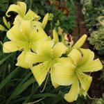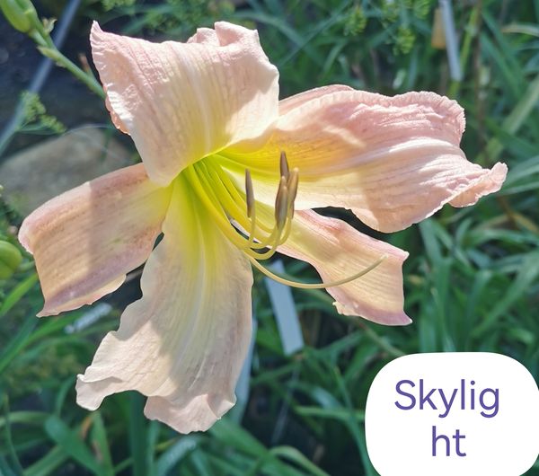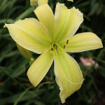 (Kinnebrew 2008) TET 91/15 SEV, zitronen-gelb, Rand gewellt, Schlund grün, 2*, 50+ Bl., (Mike Longo × Spacecoast Hope Beacon) 17 Kinder |