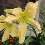 (Corbett 2002) TET 76/12,5 SEV, creme-gelb, stark gewellt, sehr runde Bluete, Schlund grün, 3*, 30 Bl., Duft, (Ed Brown x America's Most Wanted) 14 Kinder |