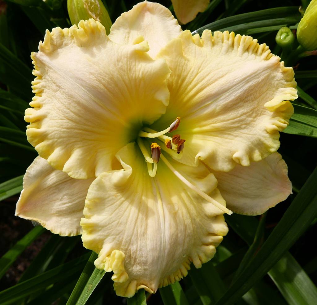 (Stamile 2008) TET 76/14 EV, weiss, gewellt, Schlund gelb-grün, 7*, 55 Bl., (((Ballerina on Ice x Key Lime Ice)x Dream Runner)x Alpine Ruffles) 10 Kinder |