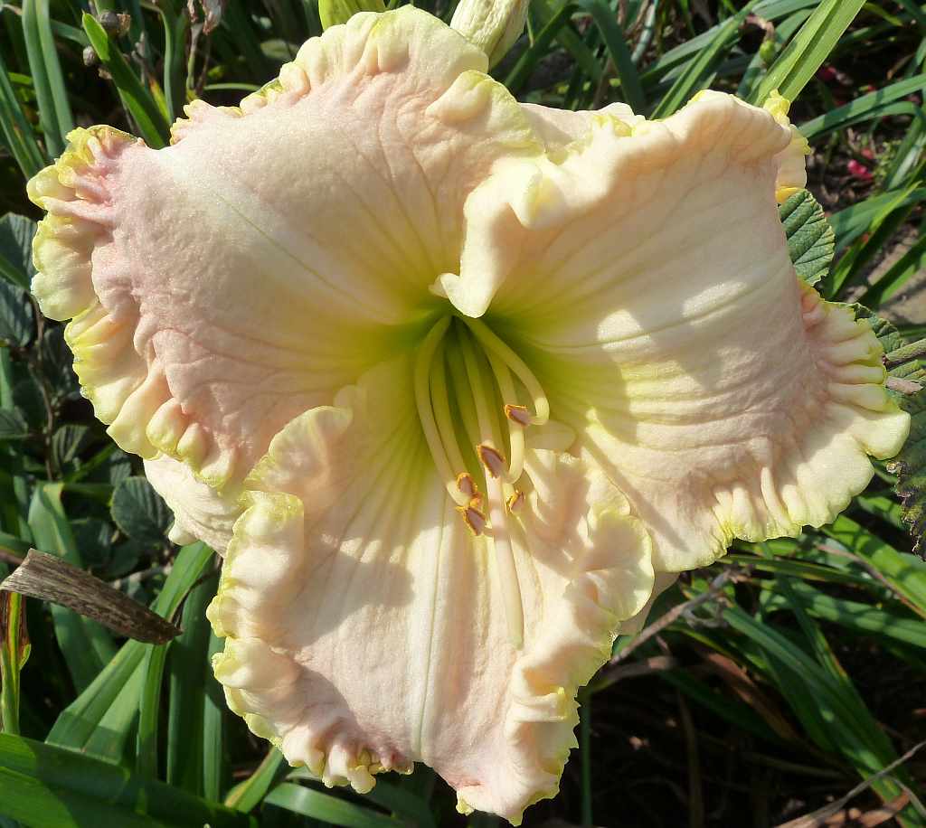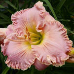 (Milikan-Kercheval 1995) DIP 66/12,5 SEV, fleischfarbend bis fast weiss, Schlund grün, (Pink Thistledown x Big Snowbird) |