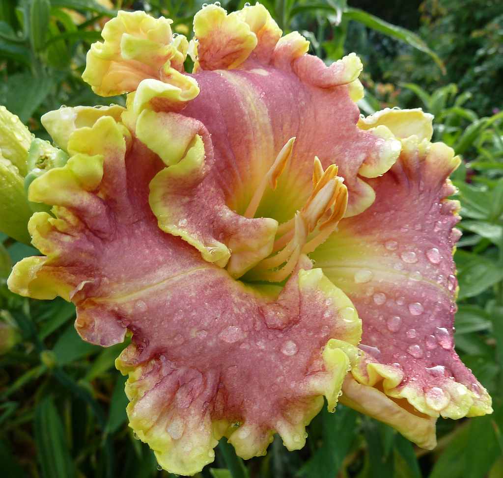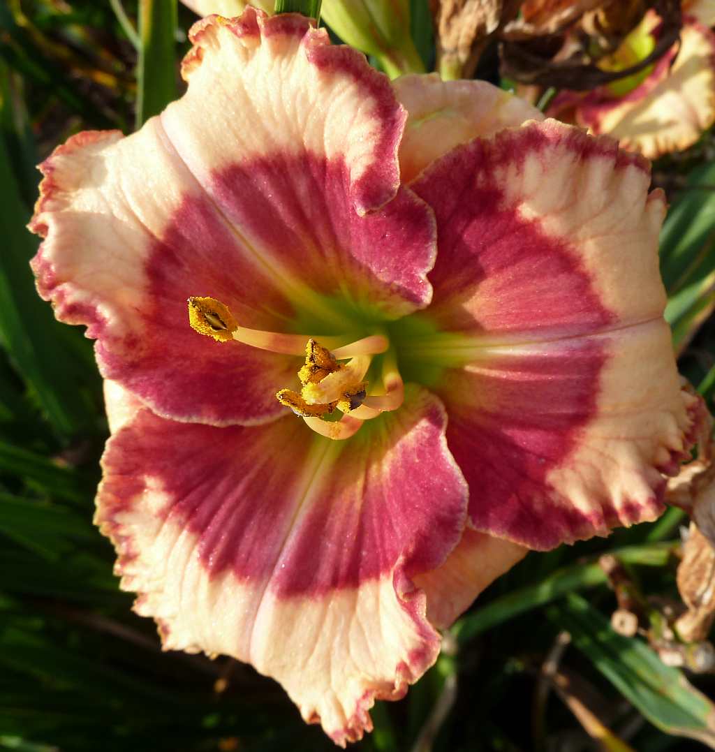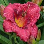 (Stamile 2002) TET 66/14 DOR, rose-pink, Goldrand gewellt, Schlund grün, 6*, 35 Bl., Duft, (Shimmering Elegance x Ed Brown)x(Red Fang x Northern Glitter) 163 Kinder |