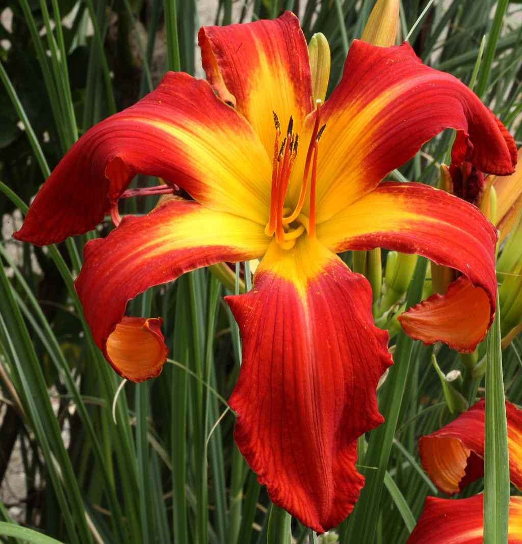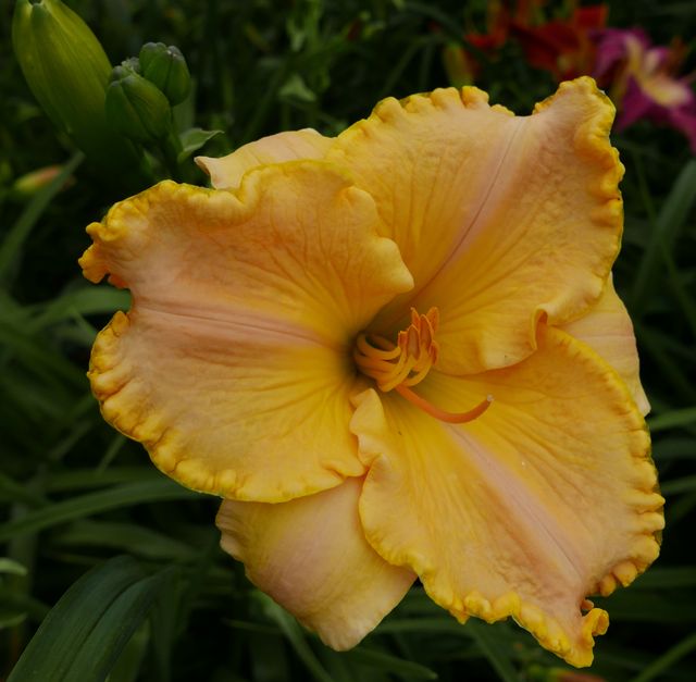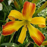 (Stamile 2000) TET 65/15 EV, chrom-gelb, stark gewellt, Schlund grün, 6*, 36 Bl., (( Earth Angel x(Betty Warren Woods x Floyd Cove)x Bill Norris) 3 Kinder |