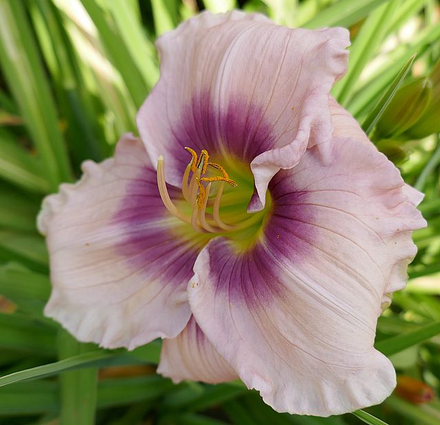 (Stamile-Pierce 2013) TET 88/16 EV, hell-orchid-lavendel, Auge dunkel-purpur, Rand dunkel-purpur+ weisse Zähne, 7*, 40 Bl., (Hooked x Slg T838) 22 Kinder |