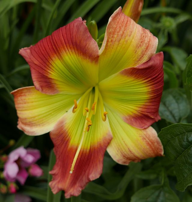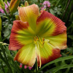 (Stamile 2008) TET 80/16,5 EV, gelb, Auge+Rand rot, Schlund grün, 4*, 30 Bl., (Morning Colors x TET Peppermint Delight) 2 Kinder |
