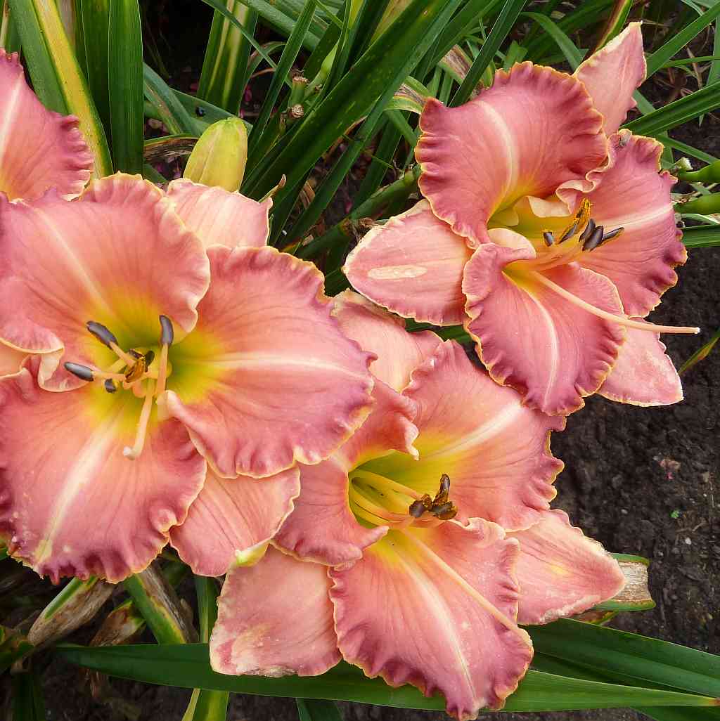 (Murphy 2013) DIP 125/18 DOR, pink, Rand lavendel, Schlund gelb-grün, 4x, 21-25 Bl., (Margo Reed Indeed × North Wind Dancer) |